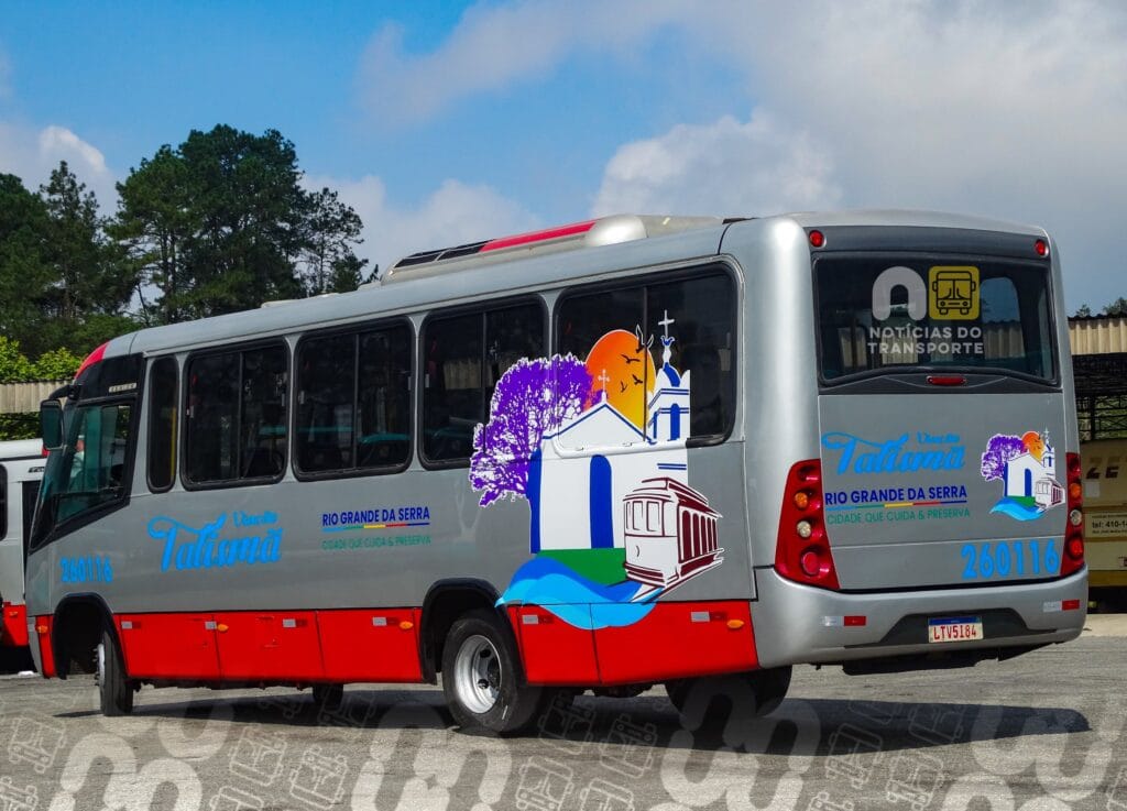 O novo padrão estético dos ônibus passa a adotar a cor predominante prata, com destaques em vermelho na parte inferior da carroceria. Além disso, a identidade visual inclui o nome da empresa em posição de destaque na frente do veículo, seguido do slogan institucional da administração municipal: “Rio Grande da Serra – Cidade que cuida & preserva”.