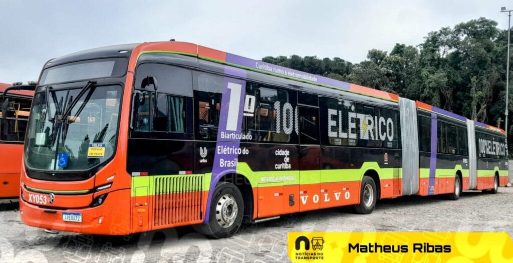 A cidade de Curitiba, referência nacional em transporte coletivo, inicia na próxima segunda-feira, 12 de maio, os testes do primeiro ônibus biarticulado 100% elétrico do mundo. O veículo começará a circular pela linha 303-Centenário/Campo Comprido, ainda sem passageiros, por aproximadamente 20 dias. Durante esse período, será utilizado com lastros de água ou areia para simular o peso real em condições severas de operação. Trata-se do modelo Attivi Express, produzido pela Marcopolo, equipado com o chassi Volvo BZRT, desenvolvido especialmente para aplicações em sistemas de transporte de alta capacidade, como o BRT de Curitiba.