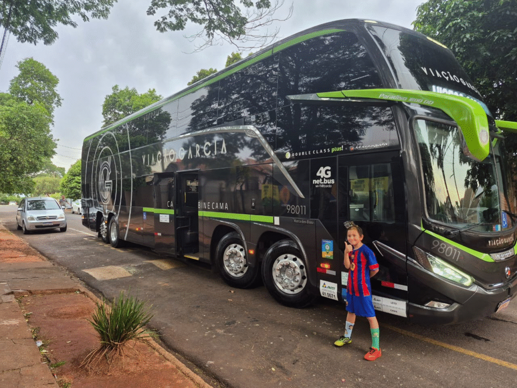 Encantado pelo universo rodoviário, João Gabriel já fala com convicção sobre o futuro: quer seguir os passos do pai e tornar-se motorista de ônibus. Ele participa de eventos internos da empresa e demonstra conhecer os modelos e características da frota.
