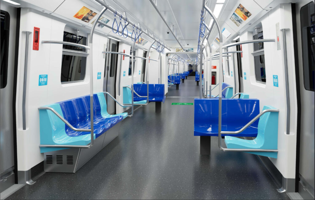 Internamente, o projeto prioriza conforto e funcionalidade. Os carros terão iluminação em LED, painéis digitais de informação e layout com cores claras, além de assentos diferenciados para passageiros preferenciais.
