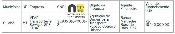 As companhias selecionadas poderão renovar suas frotas de ônibus urbanos, ampliando a oferta de veículos mais modernos e sustentáveis para o transporte coletivo. Todos os financiamentos serão operacionalizados pelo Banco Mercedes-Benz do Brasil S/A.