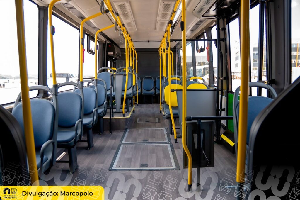 Internamente, os ônibus contam com novo padrão de acabamento, incluindo poltronas estofadas do tipo City com entradas USB individuais, iluminação em LED, piso com efeito amadeirado e sistema de ar-condicionado. A acessibilidade é garantida por rampas no lado esquerdo, elevador no lado direito e áreas reservadas para pessoas com mobilidade reduzida.