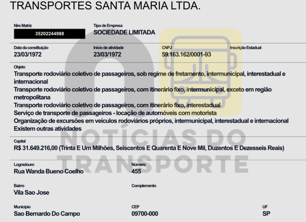 Como parte do acordo, foi negociado o CNPJ principal da empresa — 59.163.162/0001-93 – Transportes Santa Maria Ltda — que até então concentrava todas as operações, incluindo o transporte rodoviário, fretamento e turismo.