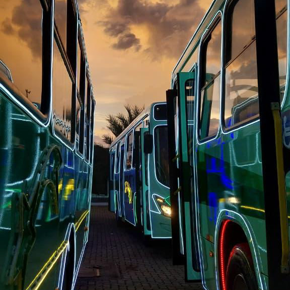 Neste ano, três ônibus especialmente iluminados e uma jardineira compõem o desfile natalino. A jardineira será puxada durante todo o trajeto, levando os personagens que dão vida à magia da temporada: Papai Noel, Mamãe Noel e uma duende acompanharão o percurso acenando, posando para fotos e interagindo com o público. Para transformar os veículos em verdadeiras atrações móveis, foram utilizados cerca de 1.000 metros de LED, criando um espetáculo de brilho e cor.