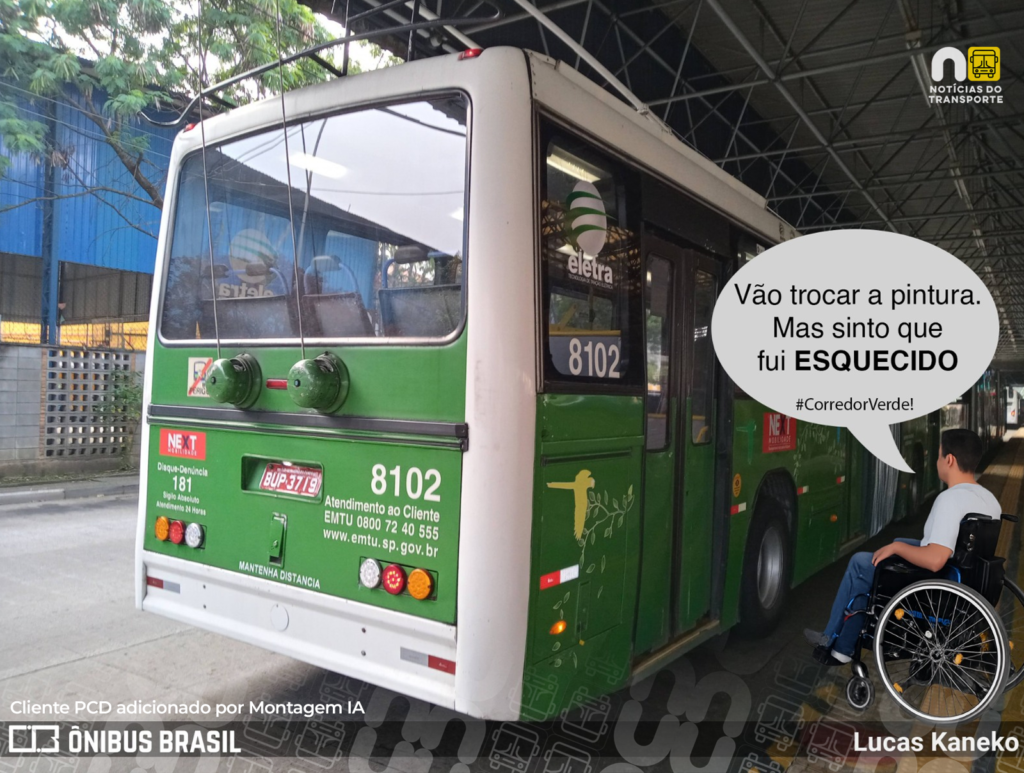 Imagens que circulam nas redes sociais nesta semana revelam que a Next Mobilidade deu início à repintura de unidades veteranas da frota do Corredor ABD. O modelo flagrado, um Marcopolo GV Trólebus fabricado em 1998, está passando pela sua terceira identidade visual desde que começou a operar. Agora, ostenta o padrão do chamado “Corredor Verde”, layout que deveria simbolizar modernidade, mas que, na prática, esconde uma frota tecnologicamente defasada e o descumprimento de contrapartidas operacionais.